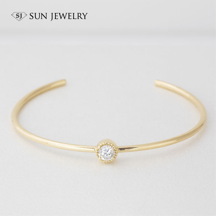 持込のダイヤモンドを使用してイエローゴールドのバングルを制作[福岡市樋井川 O様]