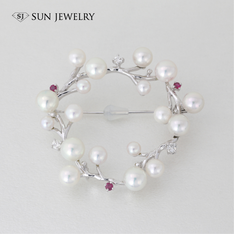 対馬の上質なアコヤ真珠を使って、植物モチーフの豪華なブローチに。
