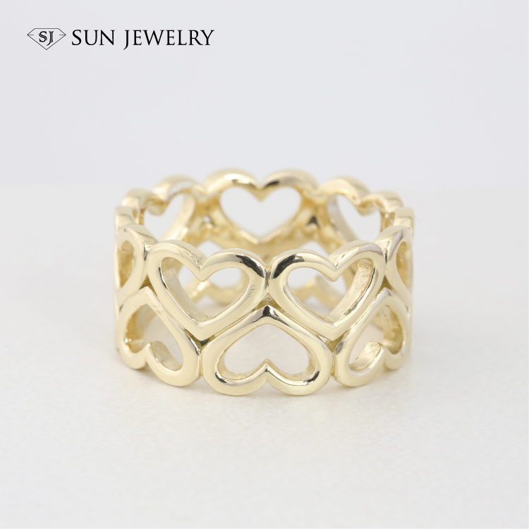 ハートが並んだイエローゴールドリング