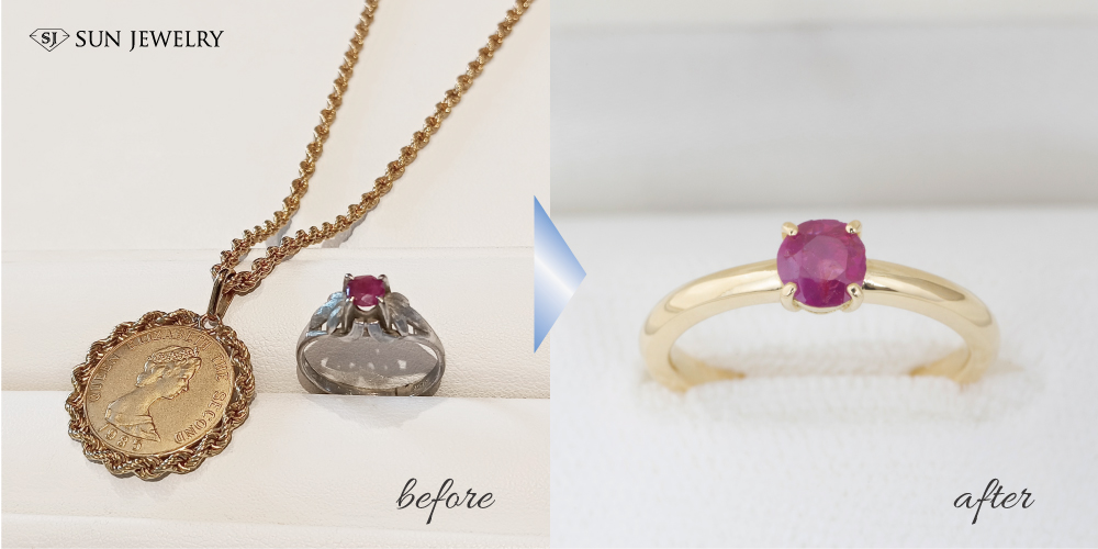 譲り受けたジュエリーを使用して、ルビーリングのエンゲージリングへオーダー制作[久留米市 S様]