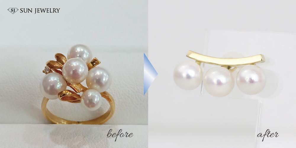 パールリングから3珠並べたパールピアスへリフォーム[福岡市花畑 H様]
